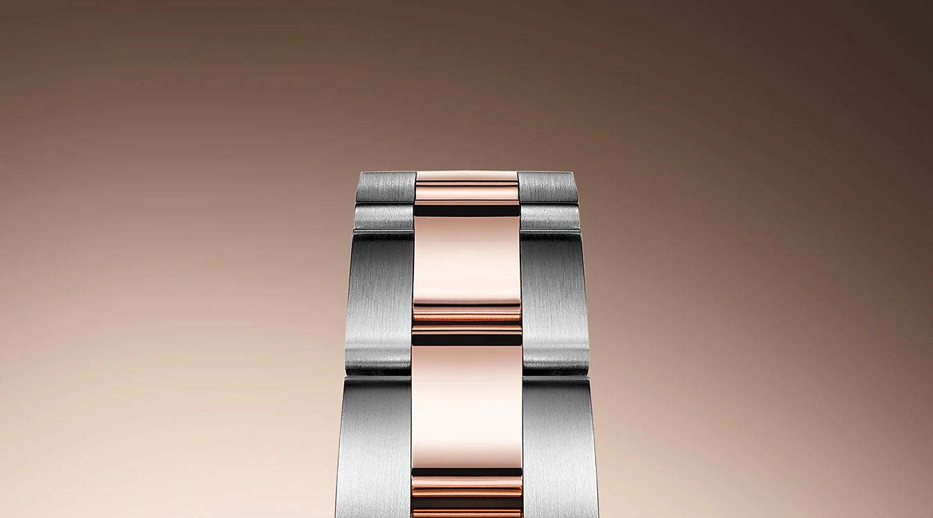 オイスター ブレスレットは、形と機能、美しさと技術の完璧な融合であり、堅牢な構造と快適な着用感を特徴とする。ブレスレットにはオイスタークラスプとイージーリンク(エクステンションリンク)も備わっており、どちらもロレックス独自の発明である。この独創的なシステムにより、ブレスレットの長さを約5 mm延長させることができ、あらゆる場面でより快適な装着感が実現する。